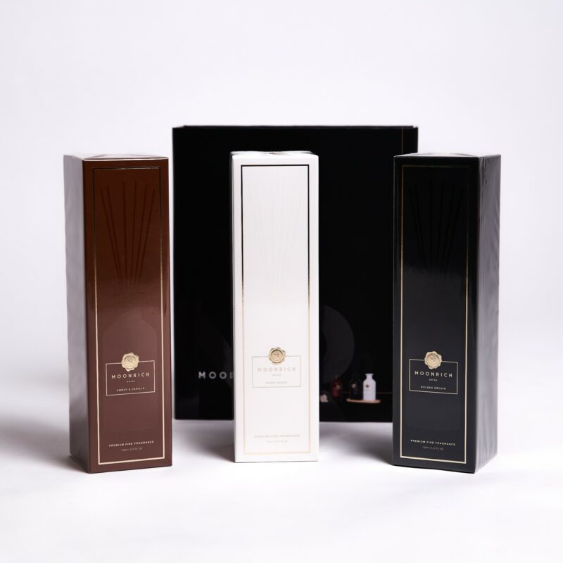 The core idea behind Moonrich was to go beyond traditional home fragrances and create an immersive lifestyle experience. Each scent was designed to evoke emotion, memory, and mood — turning everyday spaces into environments of well-being, elegance, and comfort. The brand vision focuses on clarity, modernity, and timeless refinement, positioning Moonrich as a premium interior fragrance label.