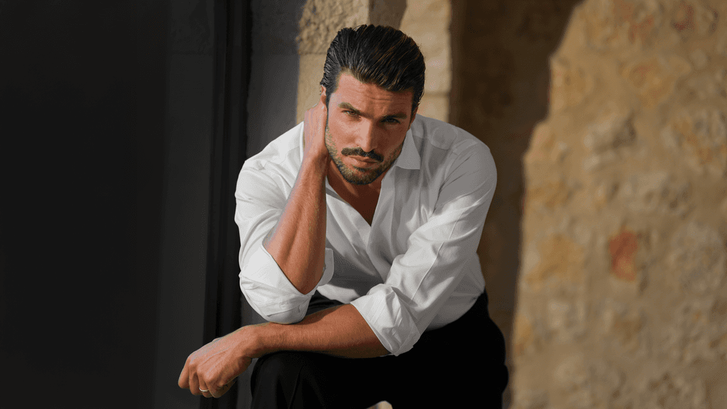 The renewed identity is embodied by Mariano Di Vaio, chosen as the face of UOMO to represent quiet strength, elegance, and modern masculinity.